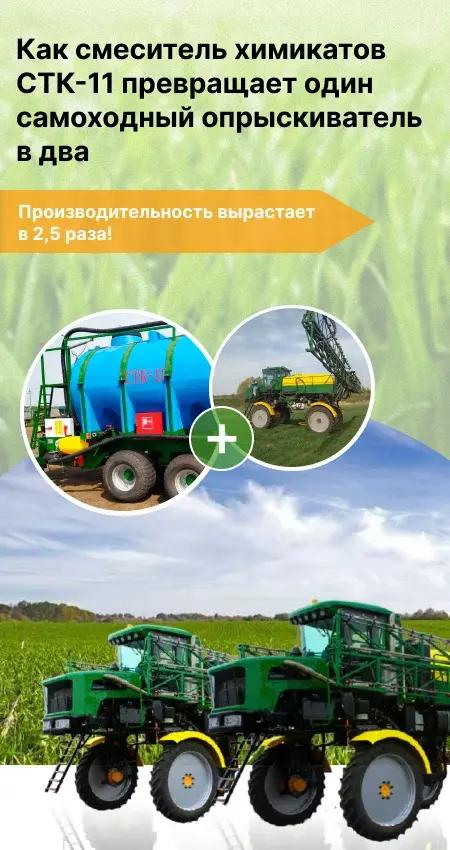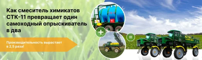 Если взять 10 часов работы в день, то со смесителем химикатов получится сделать 33 цикла, а без него – всего 15. Если перевести это на площади, то дневная производительность опрыскивателя со смесителем химикатов – 540 га, а без него – около 250 га. А представьте, какая огромная разница получается за 10 дней: 5400 га против 2500.